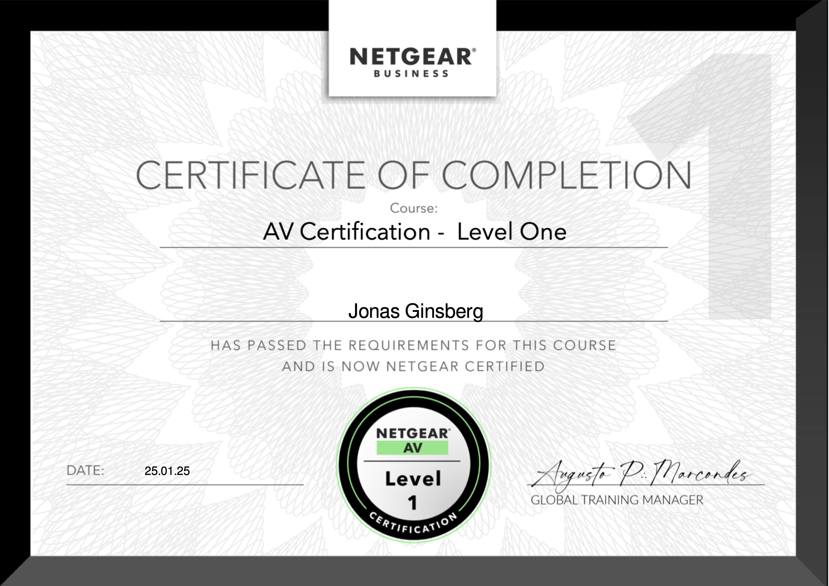 - 2025 Netgear AV Zertifizierungsprogramm Level 1 erhalten (-> Zertifikat)